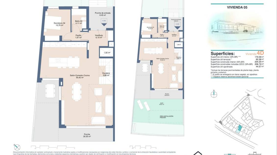 Newly Built Semi-Detached and Terraced Houses in Cabo de las Huertas, Alicante High-end homes in the best residential area of Alicante This exclusive residential complex in Cabo de las Huertas, Alicante, offers 14 semi-detached and terraced houses with 4 and 5 bedrooms, in one of the most sought-after areas of the city, between Albufereta Beach and San Juan Beach. Just 300 metres from the sea, surrounded by natural coves, amenities, schools and shopping areas, this project combines tranquillity, comfort and excellent connectivity with the centre of Alicante. Modern Design with Functional Spaces Each home is distributed over a basement, some units with a cellar, ground floor, first floor and solarium, offering spaciousness, privacy and multiple environments for everyday living. In addition, all homes have a private garden and the option of an individual swimming pool. The communal areas include a communal swimming pool and landscaped areas, ideal for enjoying the Mediterranean climate in a quiet and family-friendly environment. High-Quality Finishes and Energy Comfort The homes have been designed with top-quality materials and systems that guarantee energy efficiency and comfort throughout the year: Individual aerothermal energy for domestic hot water Ducted air conditioning and underfloor heating throughout the home, except in the basement Security entrance door and thermal break carpentry, double glazing and motorised blinds Modern bathrooms with shower trays, screens, furniture and large mirrors All terraces with lighting and power sockets; on the ground floor and separate solarium they will have water supply. Key distances: Nearest beach: 0.3 km Alicante city centre: 6 km Gran Vía shopping centre: 4 km Alicante Golf course: 3 km Alicante Marina: 6.5 km Alicante-Elche Airport: 23 km TRAM and bus stop: less than 500 m A Complete Mediterranean Lifestyle Cabo de las Huertas is synonymous with exclusivity, nature and quality services. This residential complex is perfect for those who want to live near the sea without giving up the advantages of a modern city. The surrounding area boasts prestigious schools, universities, shopping centres, cultural and sports facilities, as well as easy access to motorways, high-speed trains and the international airport. Don't miss the opportunity to live in one of the most privileged locations in Alicante. Contact us today to schedule a visit and discover your new home in Cabo de las Huertas.