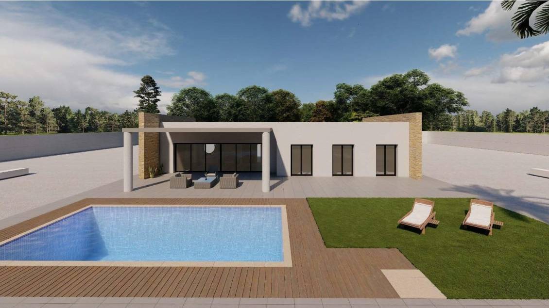 Modern newly built villa on a large rural plot near Pinoso Contemporary living in a peaceful rural setting Discover this elegant newly built villa set on a large rural plot of over 10,000 m2 (of which around 3,000 m2 will be fenced) on the outskirts of Pinoso, Alicante. Designed for those seeking privacy, tranquillity and a close connection with nature, this modern home combines contemporary architecture with the charm of the Spanish countryside. Surrounded by vineyards, almond and olive groves, the property offers a serene lifestyle within easy driving distance of all local amenities. Spacious single-storey villa with private pool The villa is laid out on one floor and has 3 bedrooms and 2 bathrooms, one of which is en suite. Outside, you can enjoy 2 covered terraces (one measuring 20m² and the other 40m²) and an 8x4 swimming pool, perfect for relaxing and having fun under the Mediterranean sun. The property also includes a parking area, a 10,000-litre water tank and motorised gate access for vehicles, all within a large rustic plot offering endless possibilities for gardening, leisure areas or simply enjoying the surrounding views. Modern features and quality finishes This newly built villa is equipped with pre-installation for ducted air conditioning. The kitchen is fully equipped with appliances, offering a functional and stylish space for everyday living. The modern design, combined with quality materials, ensures a comfortable and low-maintenance home, ideal for permanent living or as a country retreat. Location near the town of Pinoso The property is located on the outskirts of the town of Pinoso, a charming inland village with less than 8,000 inhabitants. Known for its relaxed pace of life and authentic Spanish atmosphere, Pinoso offers a wide range of amenities, including bars, restaurants, shops, a 24-hour medical centre, dentists, primary and secondary schools, a theatre and a modern sports complex with outdoor swimming pools, tennis courts, football pitches and a gym. The centre of Pinoso is about 3 km away. The city of Alicante is about 55 km away, while the white sandy beaches of the Costa Blanca are about 50 km away. Alicante International Airport is about 60 km from the property. The region is also close to the border with Murcia, adding further connectivity and lifestyle options. An authentic Spanish lifestyle surrounded by nature Living in Pinoso means enjoying a traditional rural lifestyle, with little traffic, open landscapes and a strong sense of community. In February, the surrounding countryside comes alive with almond trees in bloom, creating a spectacular natural spectacle. Your dream home in the countryside awaits This modern, newly built villa in Pinoso offers the perfect balance between contemporary comfort and the tranquillity of rural life. Contact us today for more information or to arrange a viewing and take the first step towards your new home in the Spanish countryside.