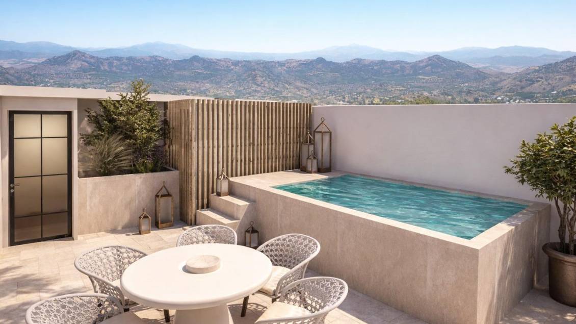 Luxury Branded Residences in Guaro Near Marbella-Costa del Sol Boutique Development Blending Andalusian Charm and Contemporary Elegance Discover an exclusive new residential resort located on the edge of the picturesque village of Guaro, offering a unique blend of traditional Andalusian lifestyle and modern luxury living. Developed by a family run boutique developer with over 20 years of experience, this project stands out for its craftsmanship, attention to detail and strong design vision. This is the first residential project in the world fully furnished and styled in collaboration with Eichholtz, setting a new standard in curated luxury living. Every home is delivered turnkey, combining refined interiors with timeless elegance and immediate move in readiness. Stylish Homes with Multiple Layout Options The development offers a variety of property types designed to suit different lifestyles. Choose from 39 elegant townhouses with three bedrooms, two bathrooms and a guest toilet, featuring private gardens and rooftop solariums with options for plunge pools, outdoor kitchens and electric vehicle charging. Additionally, there are 32 contemporary apartments available in two or three bedroom layouts. Options include ground floor units with private gardens, middle floor apartments with spacious terraces and penthouses with private solariums where optional plunge pools or outdoor kitchens can be added. Some townhouses also benefit from a basement level, providing additional flexible space for storage, leisure or home office use. High End Interiors and Premium Finishes Each residence has been meticulously designed using high quality materials and bespoke finishes. Interiors include custom made kitchens equipped with Siemens appliances, spa inspired bathrooms, fitted wardrobes and carefully selected flooring and color palettes. Every property is fully furnished with exclusive Eichholtz collections, ensuring a cohesive and sophisticated design throughout the home. Resort Style Amenities and Wellness Facilities This private residential complex offers an exceptional range of amenities designed for comfort, wellbeing and social living. Residents can enjoy two communal swimming pools with panoramic views, a stylish clubhouse with pool bar and barbecue area, and beautifully landscaped surroundings. Additional facilities include a fully equipped gym, pilates studio, padel court, coworking spaces for remote professionals and a dedicated spa and wellness area. Prime Location Near Marbella and Malaga Guaro is a charming Andalusian village known for its authentic character, whitewashed houses and peaceful mountain setting. It offers a slower pace of life while remaining well connected to key destinations on the Costa del Sol. Marbella is just 20 km away, offering luxury shopping, fine dining and beaches. Malaga Airport is approximately 40 km away, providing easy international access. Nearby Monda is only 5 km away, while several golf courses such as Alhaurin Golf are within 15 km. Unique Investment Opportunity on the Costa del Sol This development offers a rare opportunity to invest in an emerging location with strong growth potential while enjoying a high quality lifestyle surrounded by nature and culture. Contact us today to receive more information or to arrange a viewing and secure your new Branded Residence in Guaro.